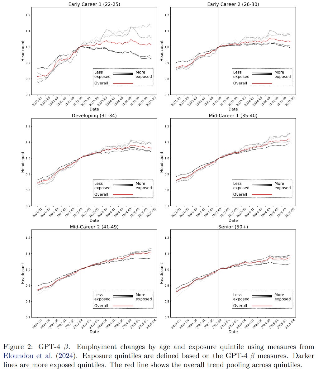 Brynjolfsson, E., Chandar, B., & Chen, R. (2025). Canaries in the Coal Mine? Six Facts about the Recent Employment Effects of Artificial Intelligence. Retrieved January 2, 2026, from https://digitaleconomy.stanford.edu/publications/canaries-in-the-coal-mine/