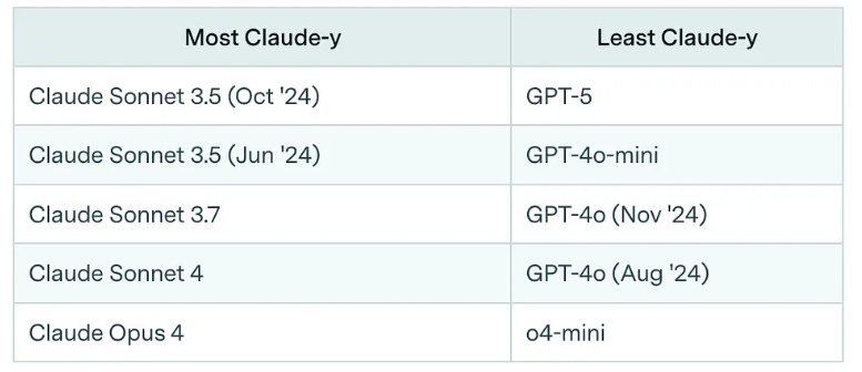 Third, AI models are derivatives of each other (Claude 3 to 3.5 to 4, GPT-3 to 4 to 4o), which explains the large variance in the second principal component. Epoch’s post on ECI shows “Claude-y” (the 2nd PC) is highest on Anthropic models and lowest on OpenAI’s. AI performance captures both general capability and company-specific training focus.