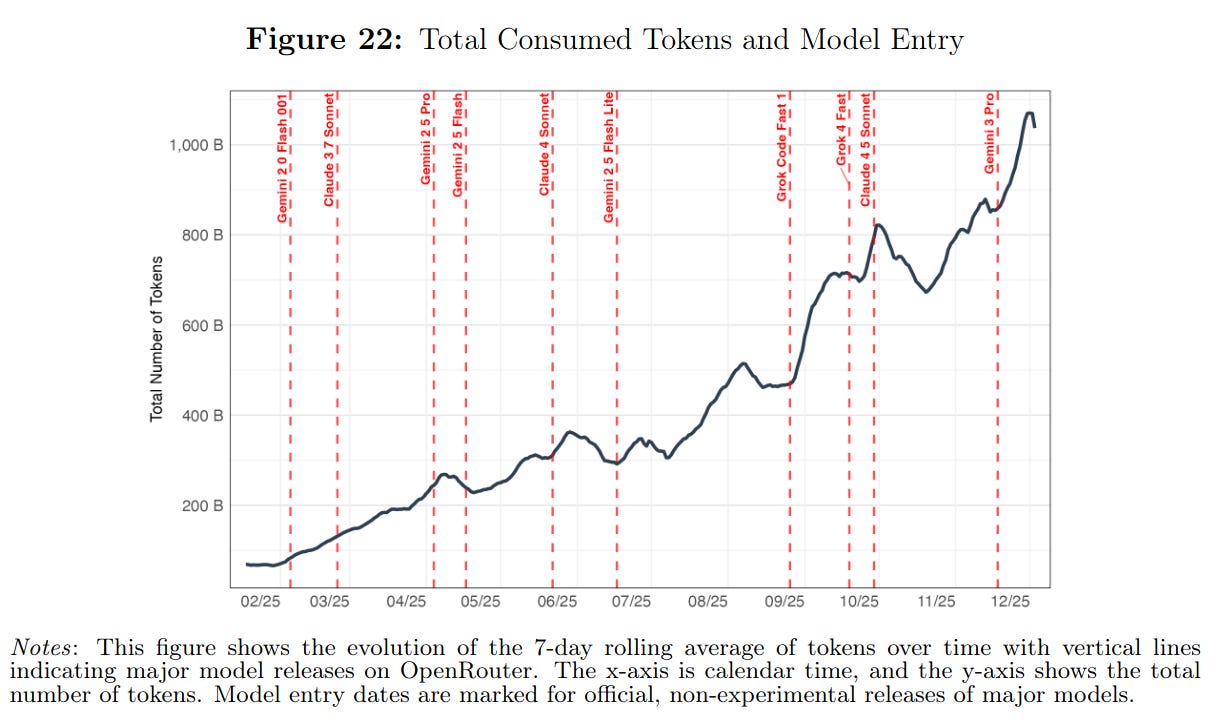 This is what we see. Menlo Ventures estimates enterprise API spending on generative AI increased from $3.5 billion to $8.4 billion in six months. OpenRouter reports token output increased 9x in 8 months, now at 1 trillion tokens per week (roughly 750 billion words).